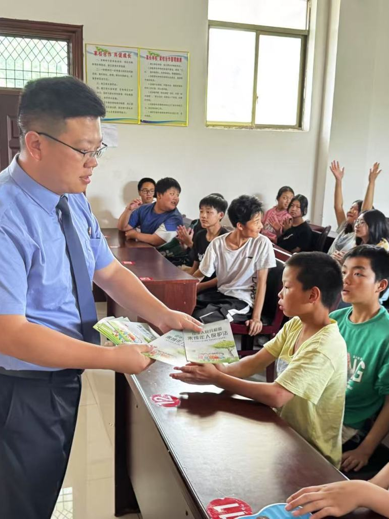 活动中,检察人员还向同学们发放了《中华人民共和国未成年人保护法》《侵害未成年人案件强制报告制度》等宣传资料110余份,资料中详细的介绍了未成年人保护法“六大保护”“九大要点”,以及履行强制报告制度的注意事项,活动还设置了“有奖竞答”环节,通过阐释民法典中关于未成年人保护的规定,增加教学互动,活跃课堂气氛,让同学们不仅收获检察小礼品,更收获民法典知识。