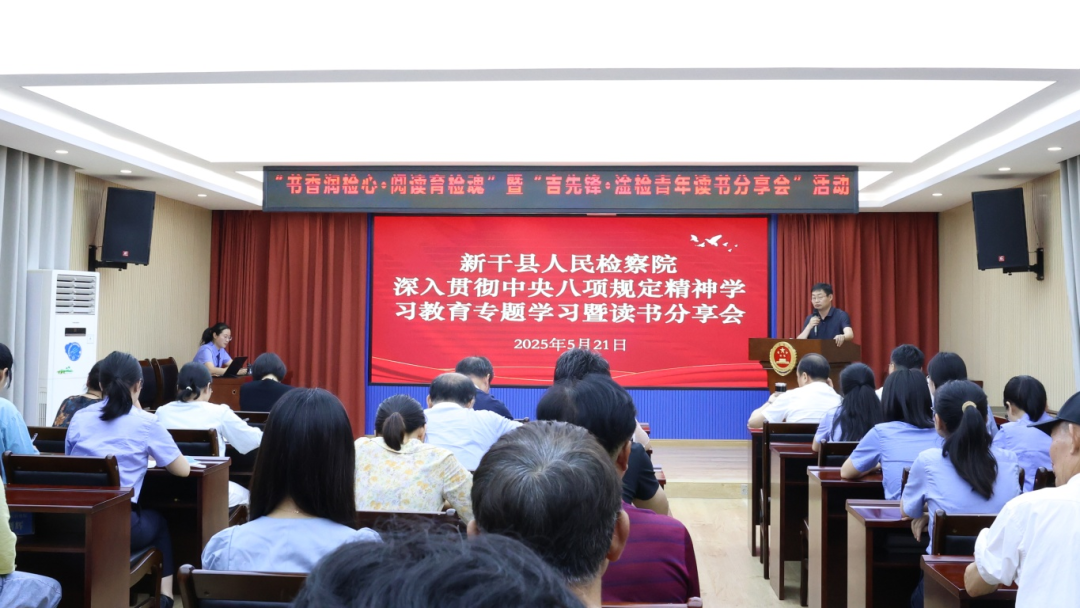 以书为伴,笃行不怠;共沐书香,行稳致远。5月21日,新干县人民检察院党支部以“书香润检心·阅读育检魂”为主题,举行了一场深入贯彻中央八项规定精神学习教育暨“吉先锋·淦检青年读书分享会”主题党日活动,开启一场思想与智慧的碰撞之旅。全体干警参加,党组书记、检察长王义正出席并作点评。