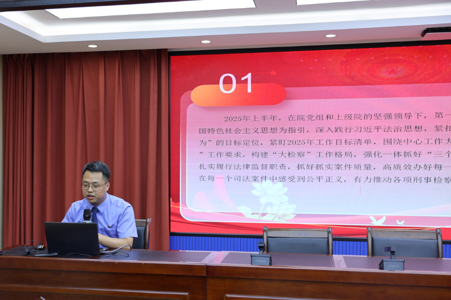 为回顾总结上半年工作,对照全年目标任务查找问题短板,研究部署下半年工作,同时对1-6月份检察业务质效进行分析研判调度,7月23日,新干县人民检察院召开2025年上半年工作总结暨业务质效分析会,党组副书记、副检察长肖咏梅主持会议,党组书记、检察长王义正出席并讲话。