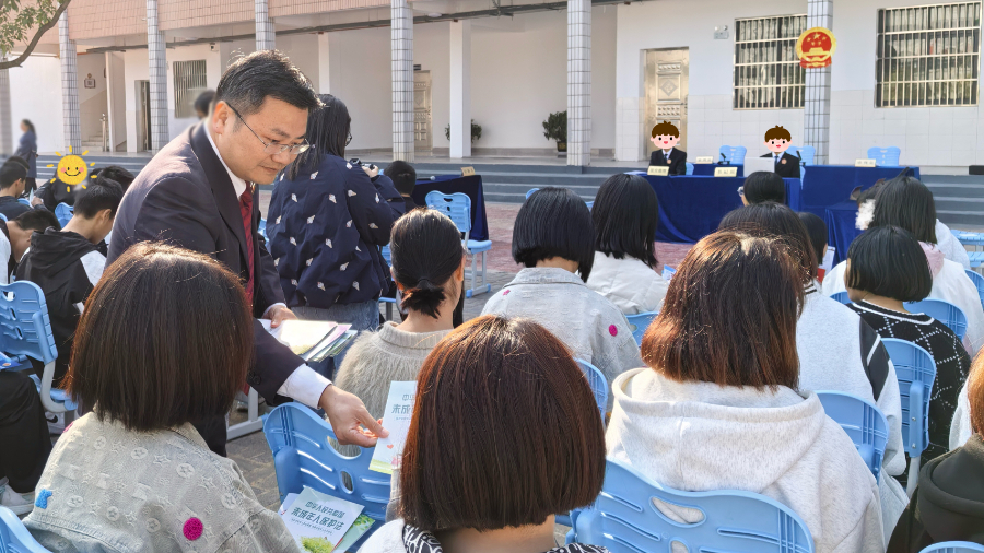 十二月的冬日暖阳下,新干县第七中学的校园内正在进行一场特殊的“庭审”。为进一步深化青少年法治教育,增强青少年法律意识,在第十二个“国家宪法日”,我院联合县委政法委、县法院、县司法局等单位将模拟法庭搬进校园,让同学们通过角色扮演沉浸式体验司法审判全过程,感受法律的神圣与庄严。量身定制的模拟案例以一起“未成年人盗窃案”为蓝本,加以改编,通过情景再现展现未成年人触及法律红线的过程。案例设计既考虑青少年的认知特点,又包含关键法律知识点,使抽象的法律条文变得鲜活可感。