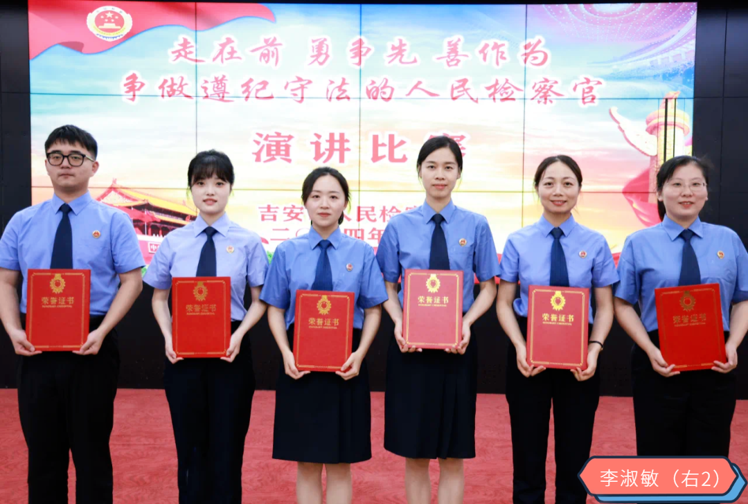 6月21日上午,一场以“走在前 勇争先 善作为 争做遵纪守法的人民检察官”为主题的演讲比赛在吉安市人民检察院落下帷幕。经过激烈的角逐,我院青年干警李淑敏凭借其扎实的演讲功底、出色的表达能力,以总分第四的好成绩斩获本次比赛的三等奖。